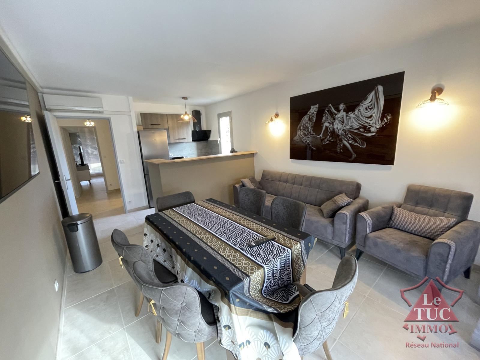 Situé au 3 eme et avant dernier étage avec ascenseur, dans une résidence sécurisée du centre ville avec piscine, maginifique appartement récemment rénové, traversant avec deux terrasses, composé d'une entrée avec placard, d'un séjour avec cuisine américaine équipée, et petite terrasse exposée au sud, un couloir de dégagement, menant à une chambre sapcieuse avec grand placard, et terrasse, ainsi qu'à une salle d'eau et à des wc séparé. Ce bien est vendu avec une cave, ainsi qu'un emplacement de parking privatif.