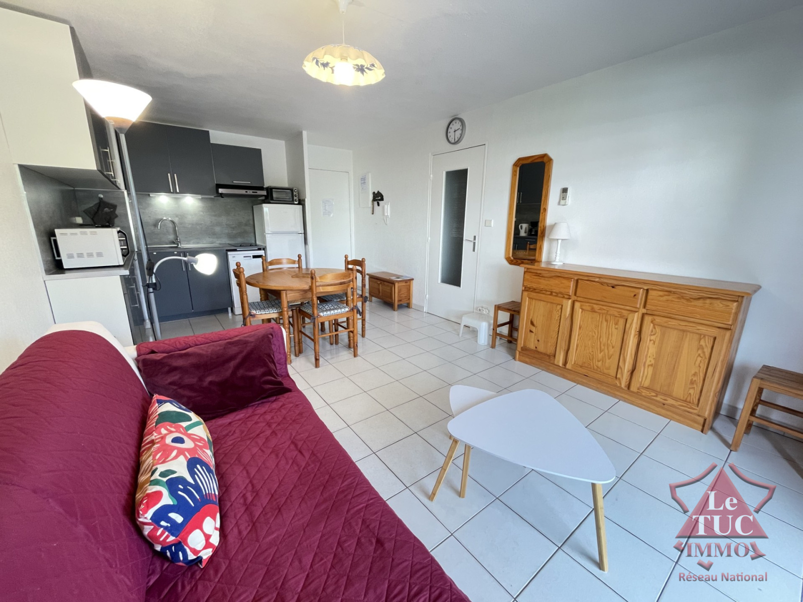 Lumineux et fonctionnel, l'appartement se compose d'un séjour convivial avec une cuisine américaine neuve, aménagée et équipée, s'ouvrant sur une agréable terrasse où vous pourrez partager des repas jusqu'à six personnes. La chambre est sufisament grande pour y installer une penderie, tandis que la salle d'eau et les toilettes indépendantes complètent ce bien