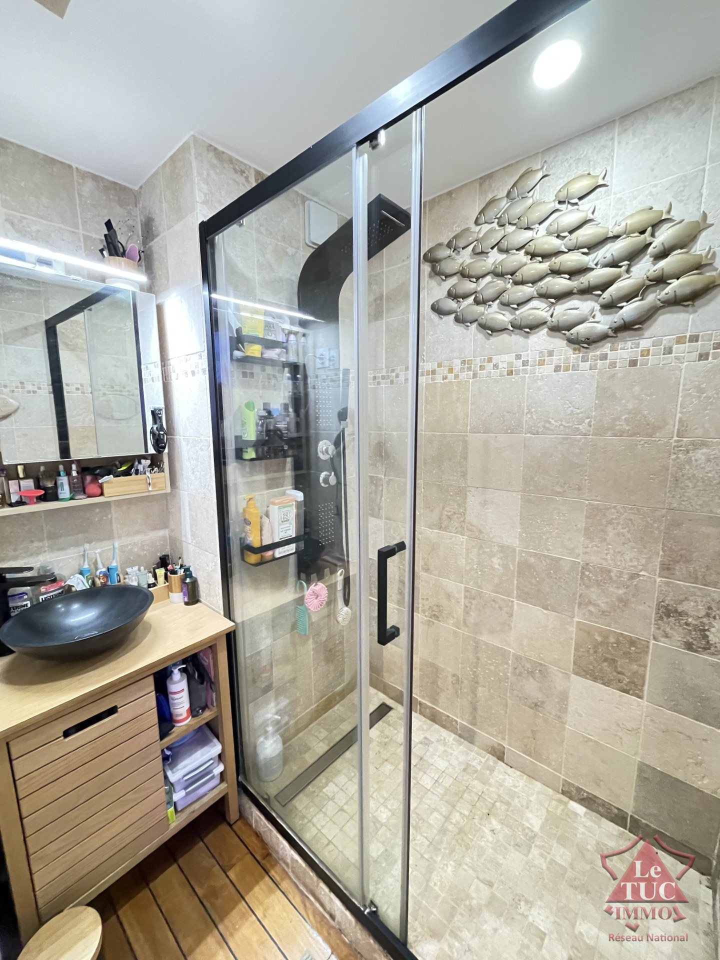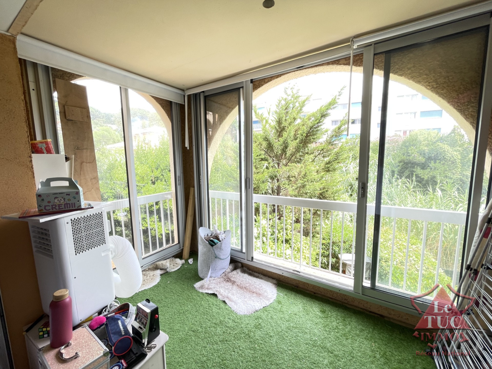 Dans une résidence proche du centre, avec piscine ( snack ouvert l'été), et gardien, appartement de 3 pièces sis au 1er étage avec ascenseur. Entrée, couloir, deux chambres, une salle d'eau, un wc, et un séjour avec cuisine US et climatisation, ouvrant sur une terrasse sans vis à vis. Le bien, vendu avec un garage fermé, est en parfait état et ne necéssite aucun travaux.Le ravalement vient de se terminer, et la rénovation de la piscine a été votée, les travaux restent donc à la charge du vendeur.