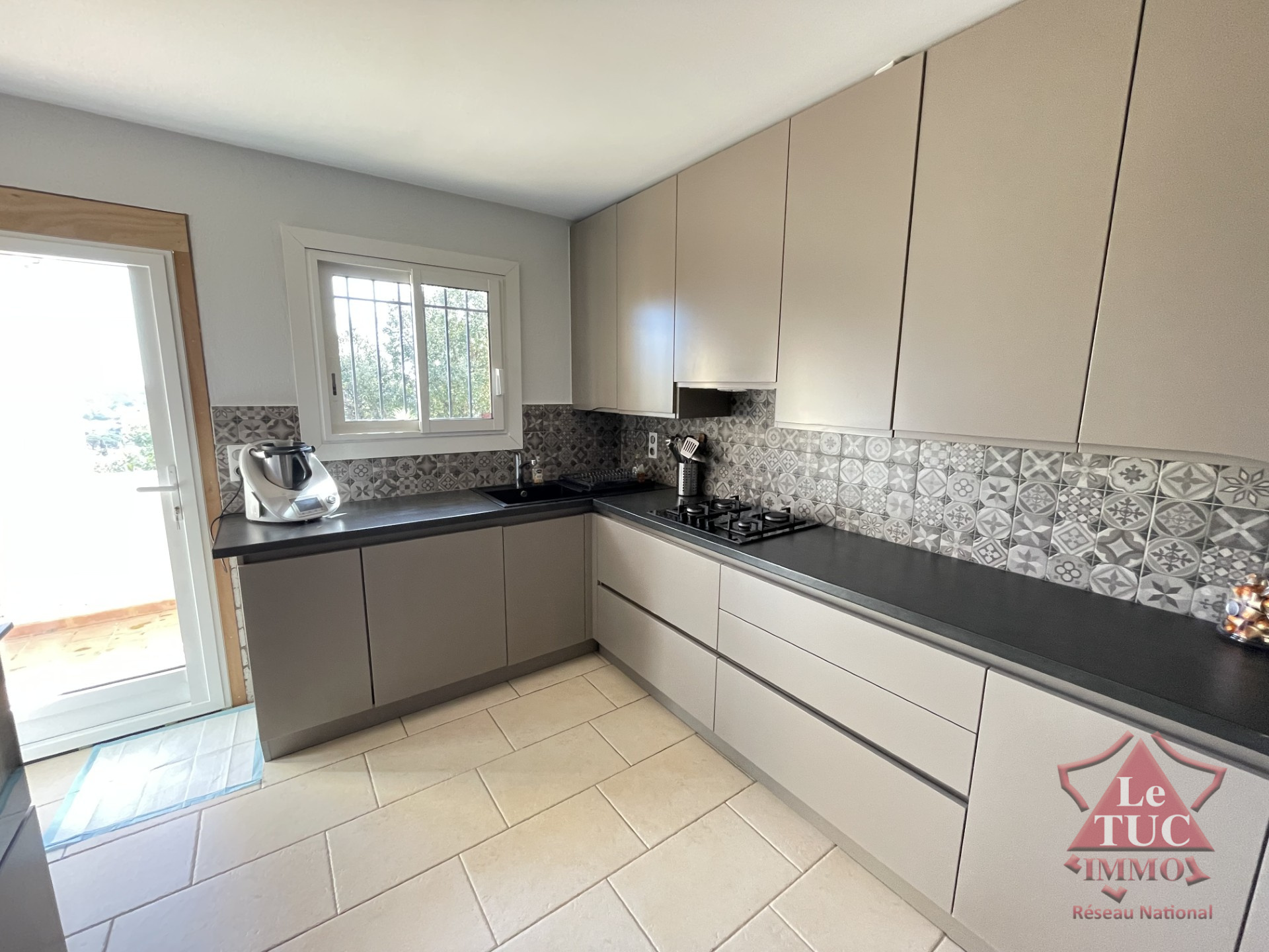 La cuisine indépendante, moderne et entièrement équipée, ravira les passionnés de cuisine. La villa dispose également de trois chambres spacieuses, d'un bureau, d'une salle de bain, d'un WC séparé et d'une buanderie.