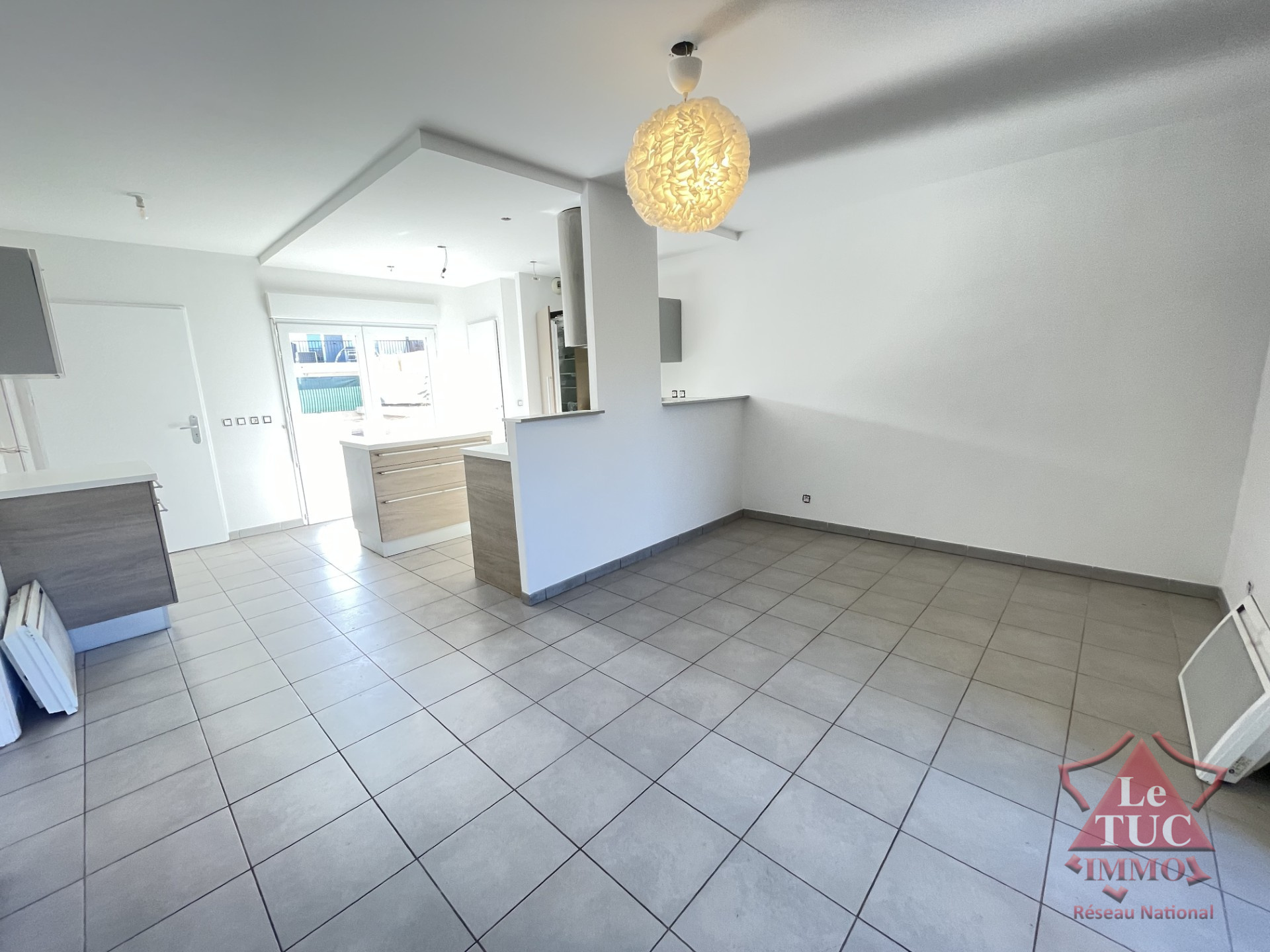 Pièce de vie lumineuse : Un beau séjour avec cuisine américaine aménagée et entièrement équipée.